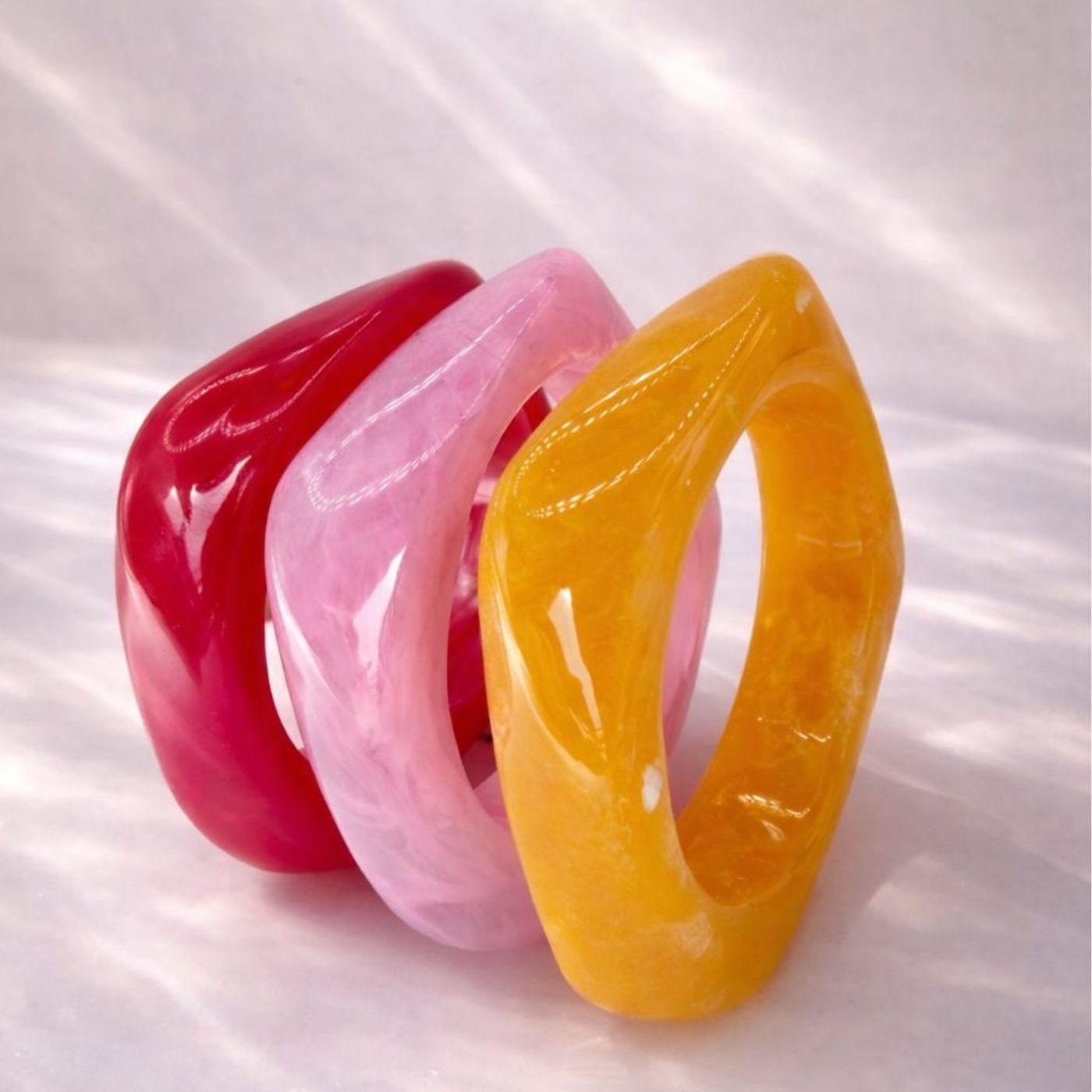 Bransolety od Lumière du Monde to nowoczesna interpretacja klasycznej formy, inspirowana naturalnym pięknem natury. Wykonana z żywicy w transparentnym, odcieniu, zachwyca lekkością i subtelną głębią koloru, który pięknie załamuje światło.