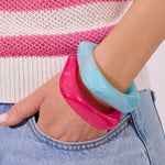 Bransoleta Transparent Blue Sky Square od Lumière du Monde to elegancka, nowoczesna forma inspirowana kolorami natury. Wykonana z żywicy w transparentnym, odcieniu, przyciąga uwagę subtelną głębią koloru i efektem delikatnego przenikania światła.
