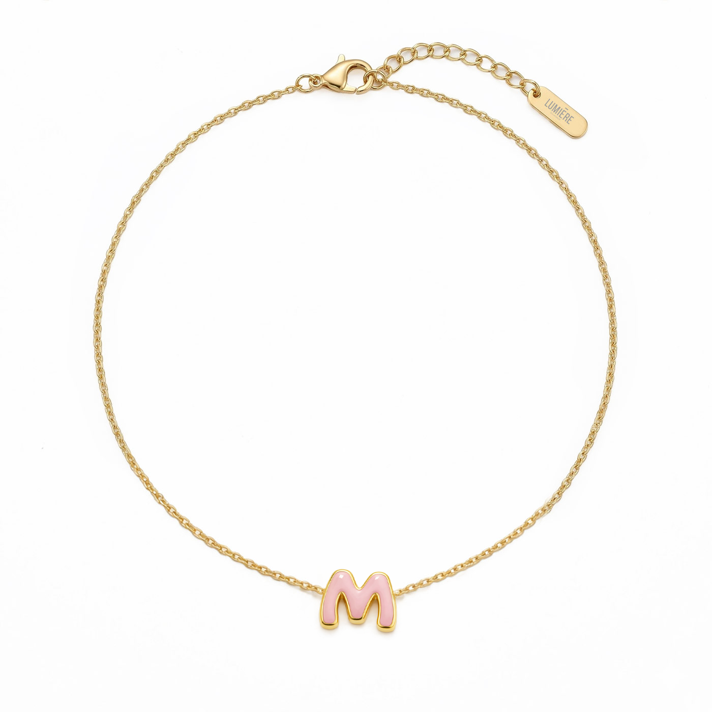 Naszyjnik z literką M w pozłoceniu z emalią Pink bloom
