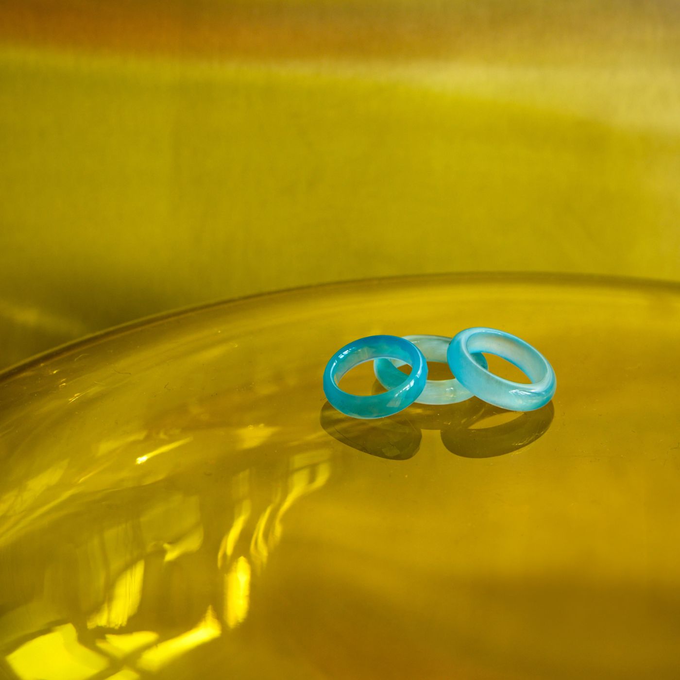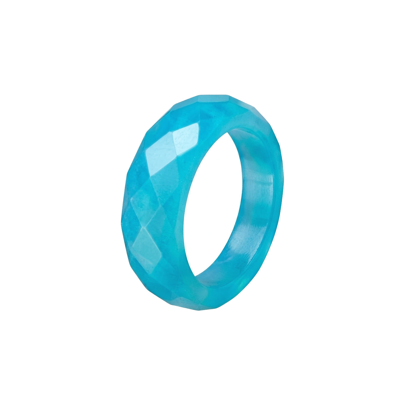 Ring made of natural Agate stone, faceted, light blue
