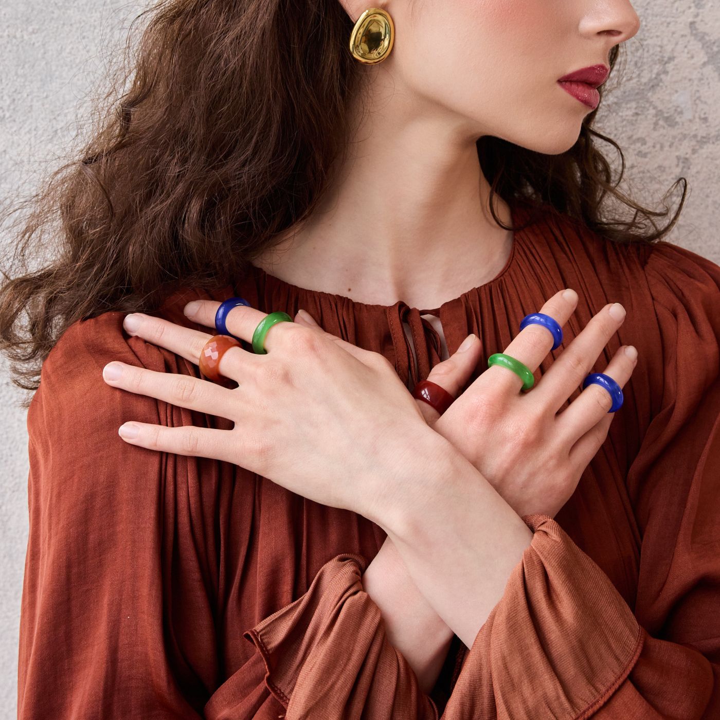 Smooth amber agate natural wide stone ring